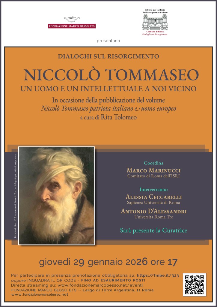 Primo appuntamento del 2026 dei Dialoghi sul Risorgimento, ciclo di incontri a cura del Comitato di Roma dell’Istituto per la storia del Risorgimento italiano
